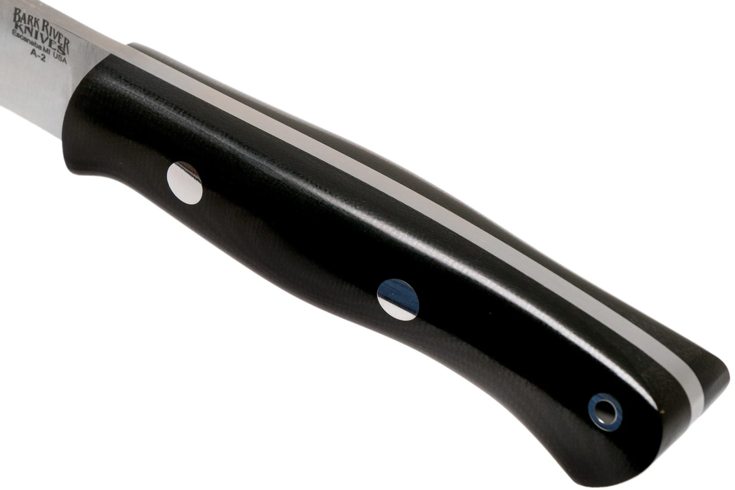 Le Bark River Aurora A2 Black Canvas Micarta est le couteau de bushcraft idéal. Les prototypes de l’Aurora ont été largement testés par des experts en bushcraft en Amérique du Nord et en Europe. Leurs commentaires ont constitué la base de travail pour la conception de ce couteau. En résulte un fantastique couteau outdoor. L’équilibre de ce Bark River Aurora est tout simplement parfait. L’extrémité de la lame est pointue pour les travaux de précision et le dos de la lame est parfait pour utiliser un firesteel. Le Bark River Aurora est livré avec un étui ceinture en cuir. On peut le porter à la fois droit (largeur max. de ceinture : 5,5 cm) et en diagonale (largeur max. de ceinture : 6,0 cm). Le fourreau est également doté d’une boucle pour firesteel (diamètre max ~7,0 mm).