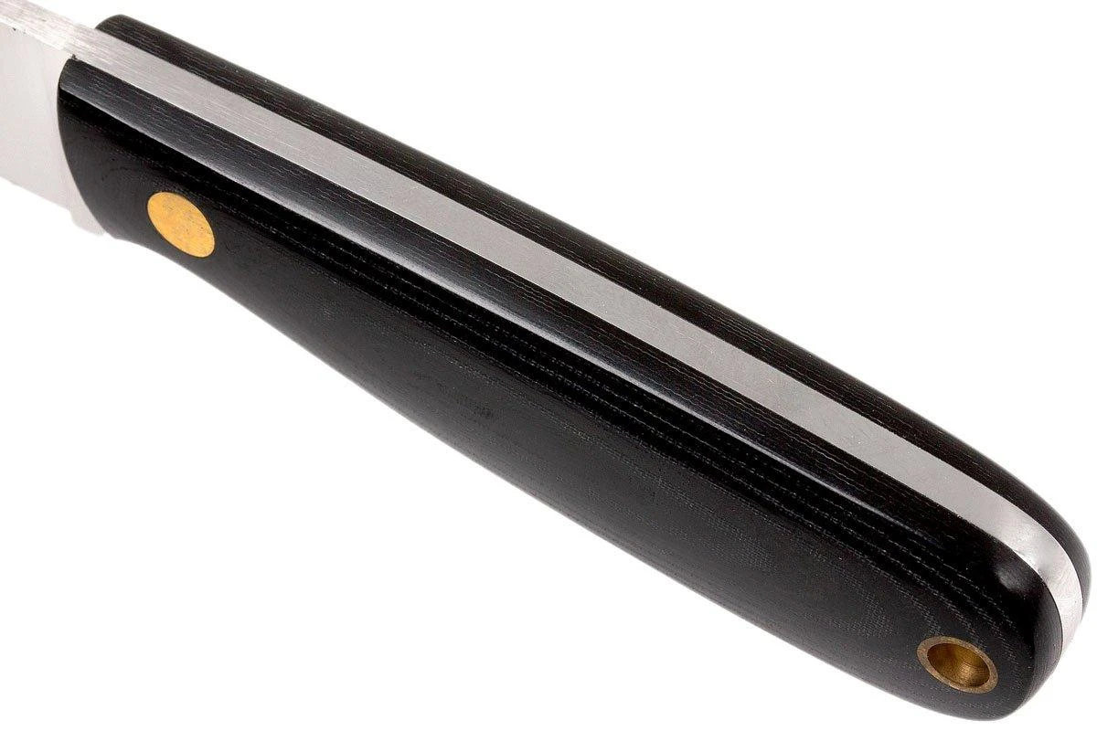 Le Brisa Necker 70 est un couteau de cou pratique dans le style traditionnel Scandinave. La longue tradition finlandaise de fabrication de couteaux se retrouve dans chacun de leurs couteaux. La lame en acier Sandvik 12C27 a une construction full-tang, elle se prolonge donc depuis la pointe de la lame jusqu’à l’extrémité du manche. Le micarta de finition brillante apporte une excellente prise en main. Ce couteau est livré avec un étui ceinture en cuir. Comme souvent avec les étuis de fabrication scandinave, le couteau se place profondément dans le cuir pour prévenir tout risque de chute.