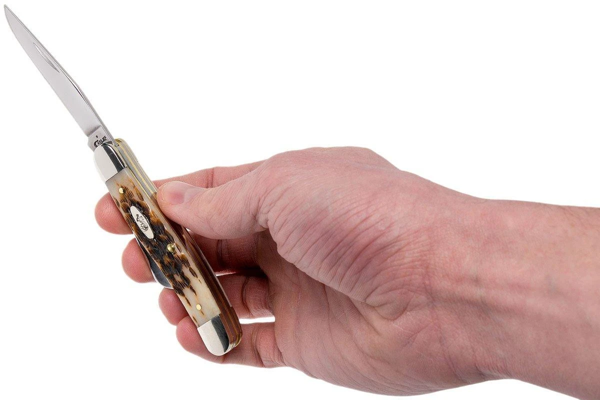 Le Case Medium Stockman est un vĂ©ritable classique dans le monde des couteaux de poche. Ce modèle est presque aussi vieux que l’ensemble de la catĂ©gorie traditionnelle elle-mĂŞme. Ce Case Stockman est une incarnation très pure de ce modèle classique. Il a trois lames : une lame clippoint comme lame principale , une lame sheepfoot de 5,0 cm et, bien sĂ»r, la lame Spey, qui est presque indispensable pour un Stockman. A l’origine, il s’agissait d’une forme de lame qui Ă©tait utilisĂ©e pour dĂ©peçage.