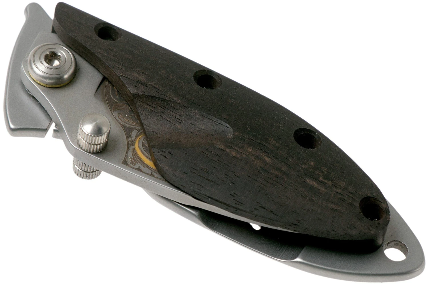 Le Maserin Onefold est un petit couteau de poche spécial, avec un manche très intéressant. Il arbore une face en ébène très fine et une en acier pour le verrouillage. Une conception originale, et pourtant très légère. Ce qui surprend chez ce couteau, c’est qu’il est orné d’or 24 carats !