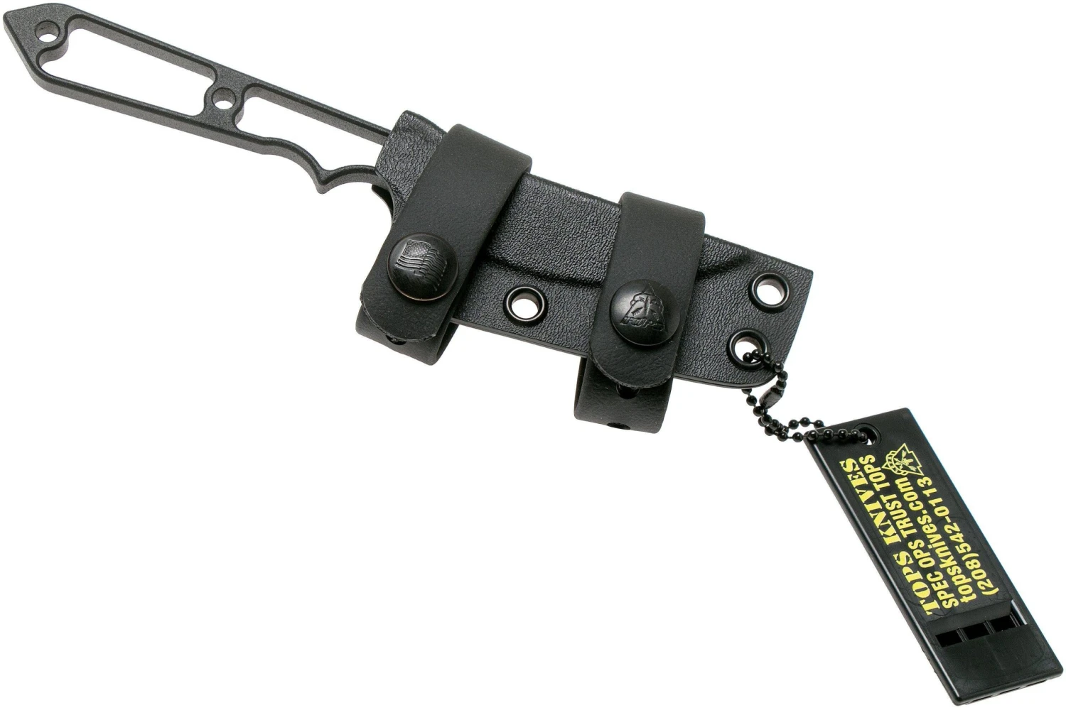 Le TOPS Knives Street Spike STS-01 est un couteau à lame fixe compact conçu pour une utilisation EDC. La construction est vraiment superbe. Le couteau est fabriqué à partir d’un gros morceau d’acier. L’épaisseur de la lame et les bords fraisés apportent une excellente prise en main. Il s’agit ici vraiment d’une construction légère d’une nouvelle génération. Le couteau est toutefois extrêmement robuste de sorte à supporter une utilisation quotidienne. L’acier carbone 1095 n’est pas résistant à la corrosion mais il est résistant à la rupture et facile à aiguiser. Le revêtement noir permet de protéger l’acier de la corrosion. Le couteau demande donc moins d’entretien.